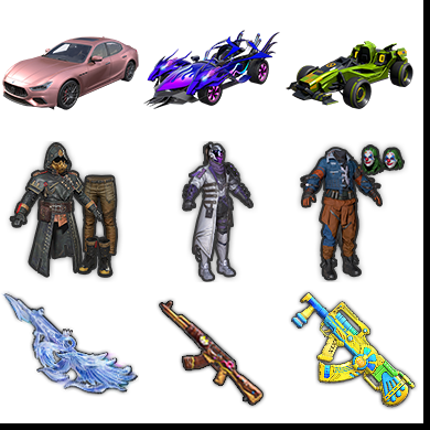 适配系统:安卓 粉装数量:28 特效枪数量:26 账号类型(腾讯):QQ 载具皮肤:6 套装数量:325 分销起租时长:1 枪皮数量:438