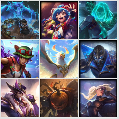 400皮肤/翡翠带妹可排位/9臻彩5神话/低胜率虐菜/西部奥巴马/魔女莫甘娜/星守金克斯