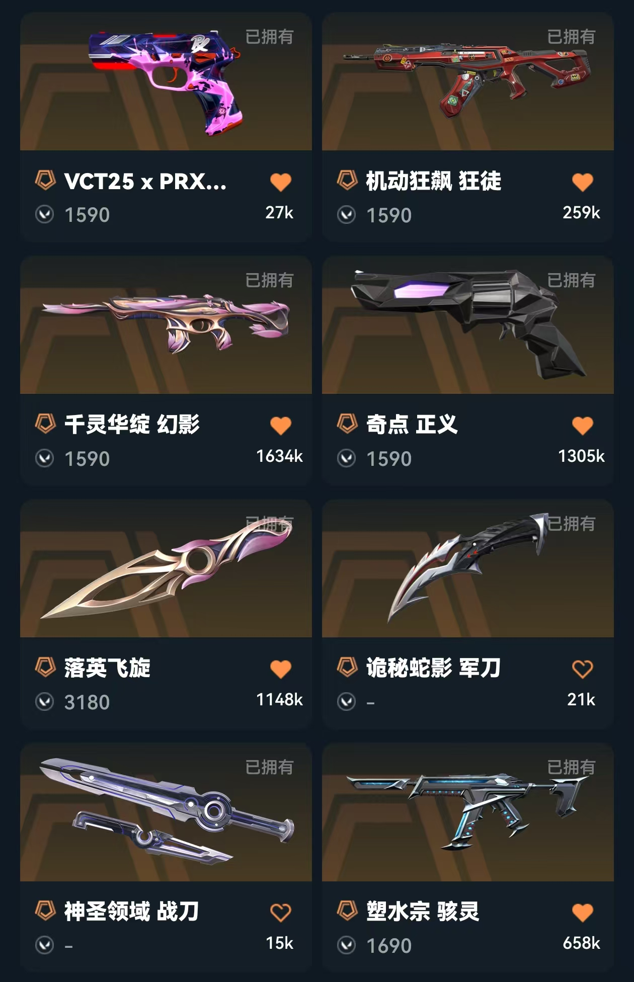 4.23RR851@2.1W库存*落英飞旋*紫金爪刀*盖亚狂徒*VCT标配*莲花幻影*侦查幻影*猫猫狂徒*猫猫鬼魅...