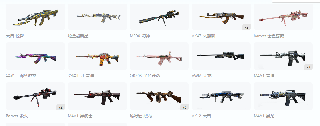SY405@80V/M200幻神-幻神曹操/6烈龙/QBZ03-金色蔷薇/火麒麟-轻羽皮肤/毁灭-战神张飞/天龙-...