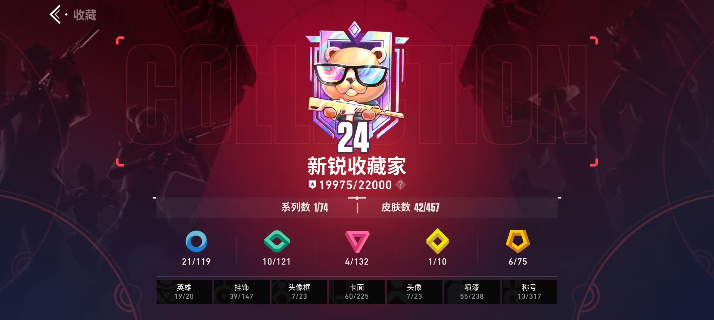 武器皮肤数量:42 适配系统:安卓 传奇数量:4 卓越数量:1 终极数量:6