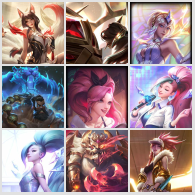 艾欧尼亚 102臻彩 圣堂弗耶戈圣堂莫甘娜 神话温泉阿狸兔司令女枪 218限定 130传说皮 神话棋盘 神话小小英
